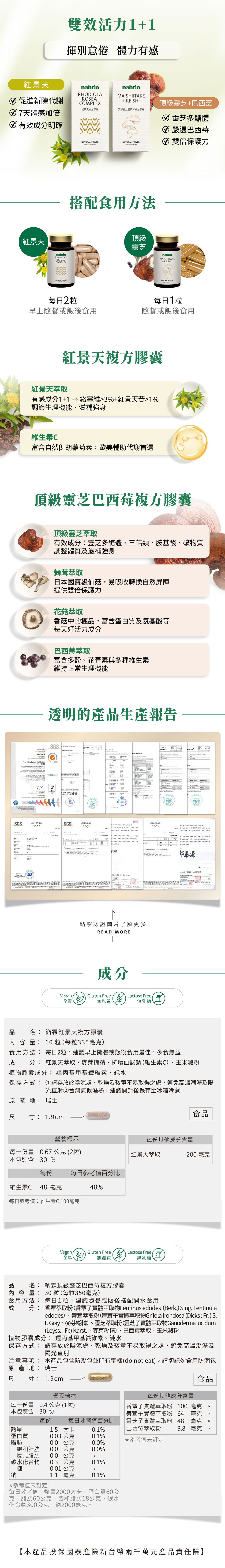 雙效活力1+1 紅景天+頂級靈芝巴西莓